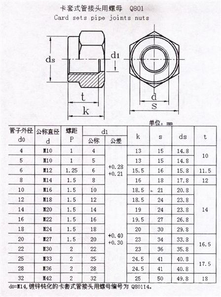卡套接头标准尺寸